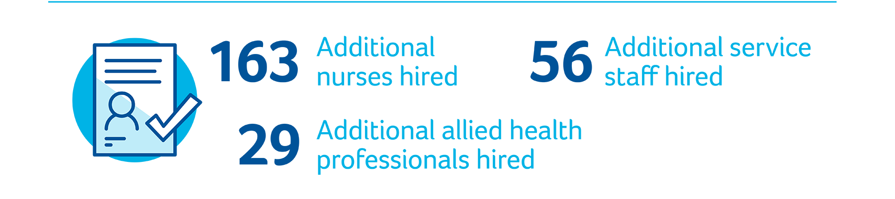• Opened three units at the Reactivation Care Centre (Humber River Hospital’s Church St. site), adding 69 beds of capacity, to provide specialized care and support for patients no longer requiring acute medical care, with the goal of improving health outcomes and patient experience, and creating more space within the hospital to care for our sickest patients.